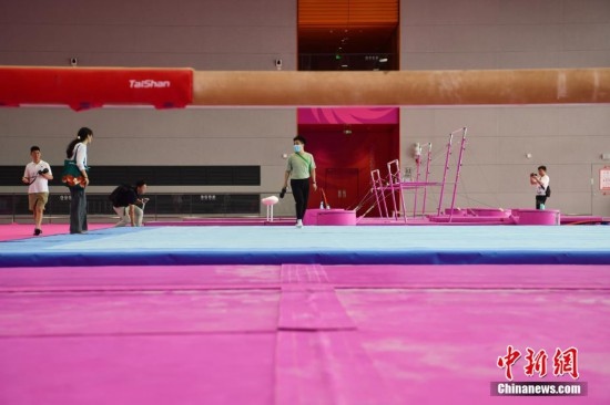 7月14日,成都東安湖體育公園內(nèi),成都大運會體操比賽訓練場的粉色布置吸引媒體記者探訪。海綿墊、平衡木、吊環(huán)、鞍馬等設施均為粉色,充滿青春活力,令人倍感放松。目之所及,海綿墊、平衡木、吊環(huán)、鞍馬等設施均為粉色。