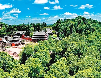 遠眺四川省梓潼縣七曲山風景區(qū),綠樹藍天相映成趣。本文圖片均由李 貧攝