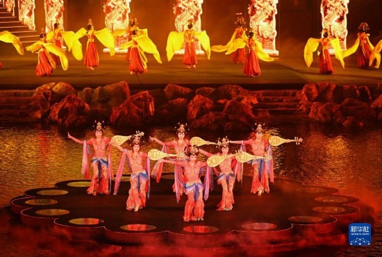 8月26日,演員在北戴河碧螺塔酒吧公園為游客表演大型實(shí)景秀《浪淘沙·北戴河》。