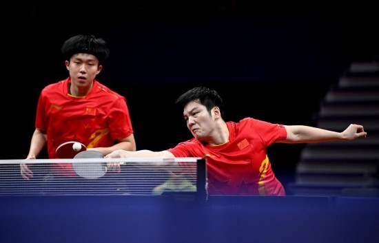 10月1日,樊振東(右)/王楚欽在比賽中。新華社記者 王鵬 攝
