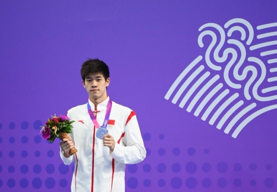 2023年9月27日,亞軍中國(guó)選手潘展樂在杭州亞運(yùn)會(huì)游泳項(xiàng)目男子200米自由泳的頒獎(jiǎng)儀式上。新華社記者 黃宗治 攝