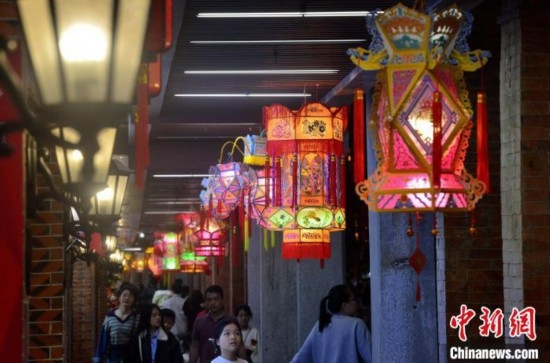 圖為2月20日晚,民眾在泉州古城內(nèi)觀賞花燈。中新網(wǎng)記者 張斌 攝