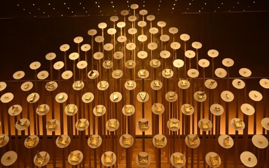 《管子·輕重甲》載:“楚有汝、漢之黃金”。楚地盛產(chǎn)黃金,貨幣制度發(fā)達。158枚楚金幣布成的“金山”如同暗夜繁星,吸引了眾多游客的目光。楚金幣是博物館特色藏品之一,有龜版形、楔形和圓形,并印有“郢爰”“陳爰”等印記。