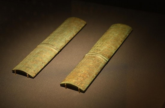 壽縣邱家花園出土的鄂君啟金節(jié)(復(fù)制品),原件現(xiàn)收藏于中國國家博物館和安徽博物院。新華社記者 周牧 攝