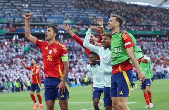 新華社德國斯圖加特7月5日電(記者杜哲宇、岳東興、肖世堯)2024歐錦賽四分之一決賽5日上演精彩對決,西班牙隊?wèi){借在加時賽最后時刻的進(jìn)球以2:1力克德國隊,昂首挺進(jìn)四強(qiáng)。