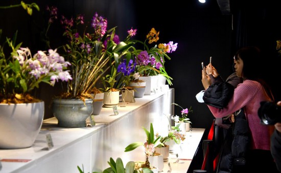 2月5日,市民在觀賞國(guó)家植物園展出的蘭花。新華社記者 李欣 攝