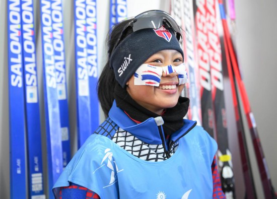 2月6日,泰國越野滑雪隊員納塔查·查提提米提接受記者采訪。新華社記者 胡虎虎 攝