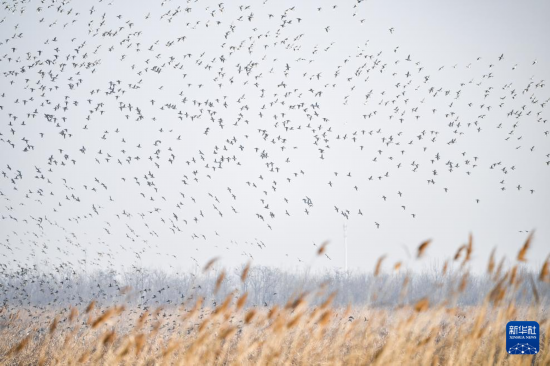 這是2月26日在天津七里海濕地自然保護(hù)區(qū)拍攝的“鳥浪”。