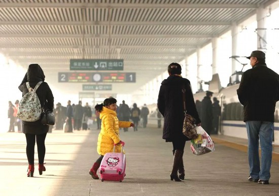 2015年,一對老兩口乘坐高鐵到北京與兒子過團(tuán)圓年,實現(xiàn)反向春運。
