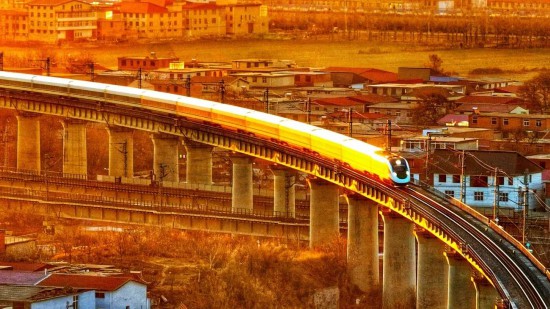 1月28日除夕,一列復(fù)興號動車組迎著朝陽行駛在京廣高鐵上。