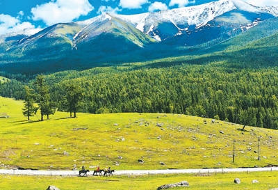 “網(wǎng)紅”打卡地變“長(zhǎng)紅”目的地(煥新之旅) 游客在新疆維吾爾自治區(qū)阿勒泰地區(qū)哈巴河縣騎馬游玩。......