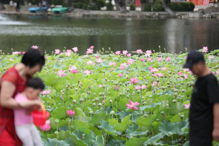 7月30日,呼和浩特青城公園的荷花進入最佳觀賞期,吸引眾多游人前來打卡。