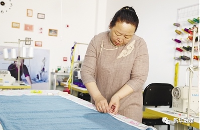 2014年,哈斯格日樂被識別為建檔立卡貧困戶,病情好轉(zhuǎn)后,她便干起了老本行——裁縫。2016年,伊敏蘇木黨委、政府及幫扶單位幫她申請了產(chǎn)業(yè)扶貧項目和資金,鼓勵她繼續(xù)從事民族服飾制作。當(dāng)年,她從幾十平方米的小作坊搬進了200多平方米的民族文化產(chǎn)業(yè)創(chuàng)業(yè)園門店。這門店,她享有兩年的免費使用權(quán)。2017年末,哈斯格日樂脫了貧,但還享受政策。
