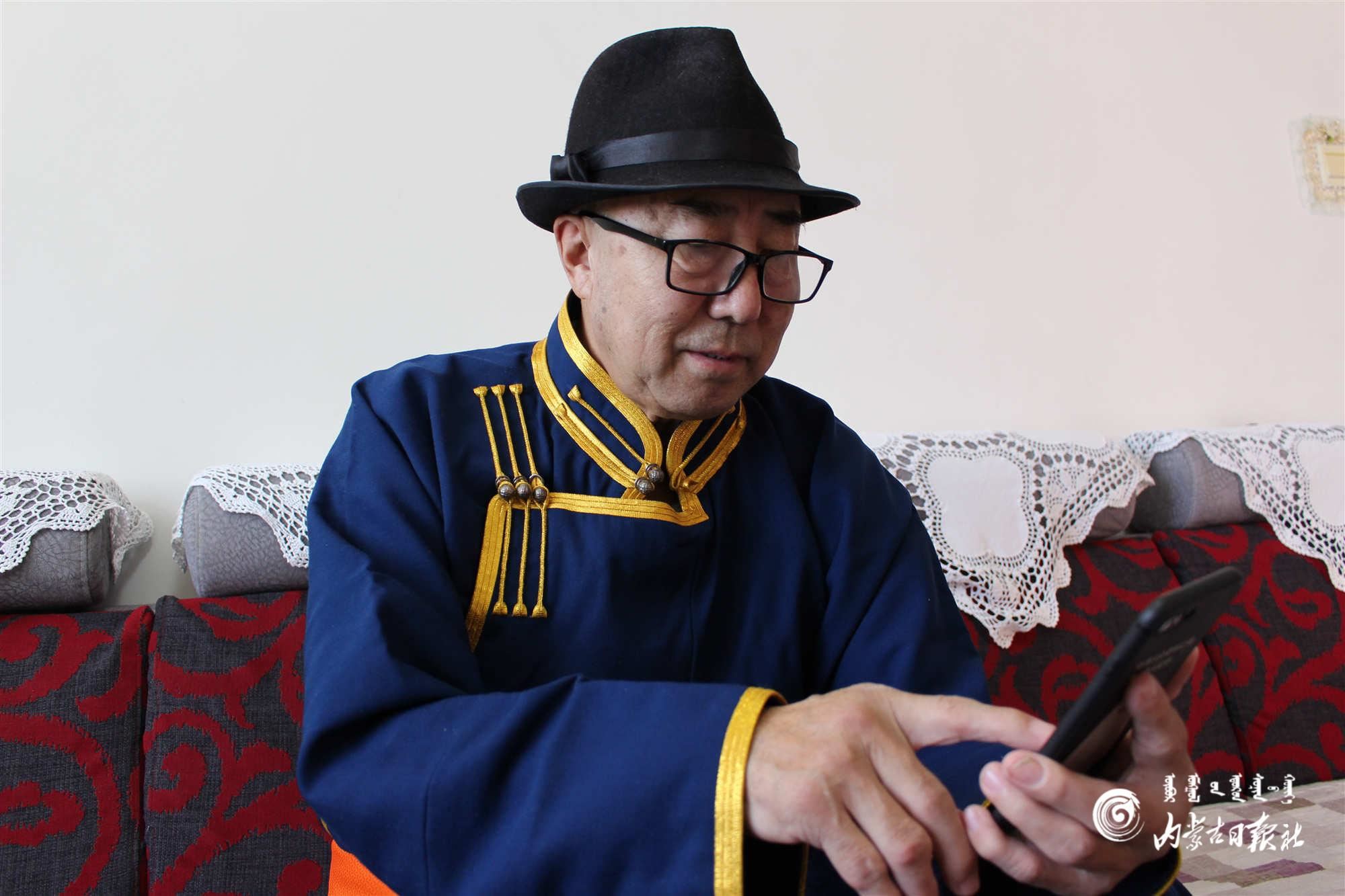 阿拉坦倉老人通過手機(jī)了解兩會(huì)信息。