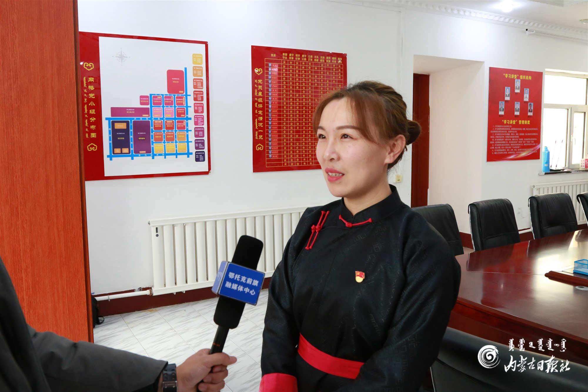 滿都拉社區(qū)黨支部書記、居委會(huì)主任鄔瓊接受采訪。