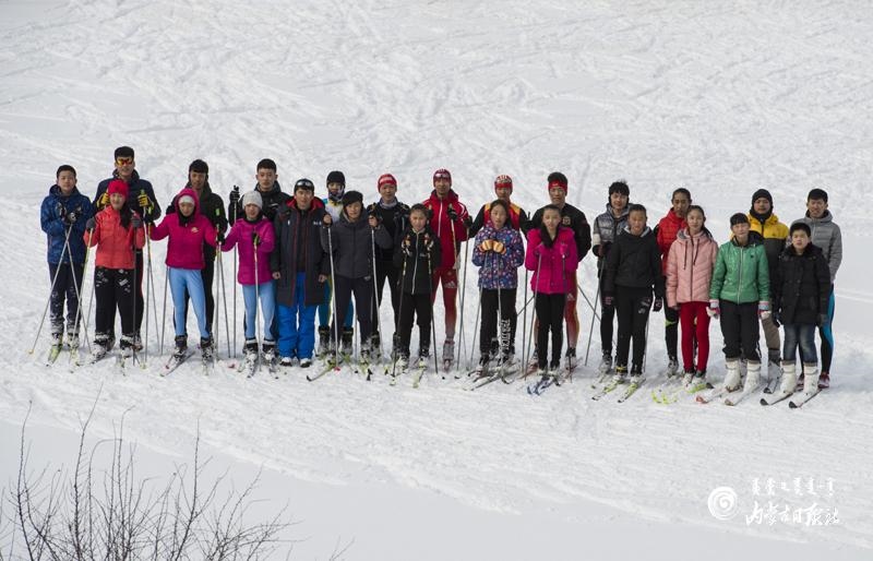 劉東雨帶領(lǐng)下的牙克石市第一中學(xué)滑雪隊(duì)。