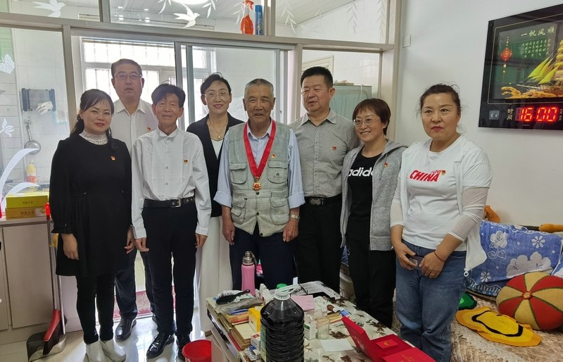 當天下午,各黨組織代表共同來到阿左旗額魯特街道黨工委所屬社區(qū),入戶慰問了3名老黨員與1名貧困戶,為他們送去了生活物資,還為90歲高齡老黨員常根禎及86歲老黨員張世云佩戴了“光榮在黨五十年”榮譽勛章。幾位老黨員非常感動,給大家講起了自己當年的故事。