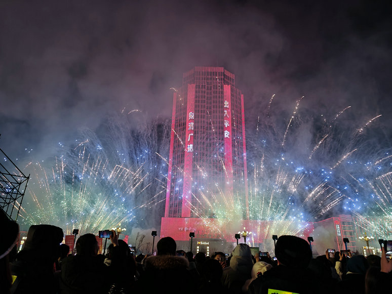 1月1日零時,隨著新年鐘聲的敲響, 內(nèi)蒙古自治區(qū)呼和浩特市數(shù)萬人在新華廣場倒數(shù),迎接2024年到來。
